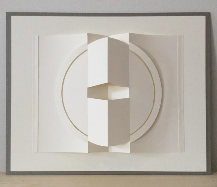 CIRCLE #1, 2016. Cut and folded watercolor paper, graphite, museum board mounted on archival cardboard. 16 ¾” high, 20 ¼” wide, 2” deep. August 22, 2016August 22, 2016 864 × 744 circle Like Loading...